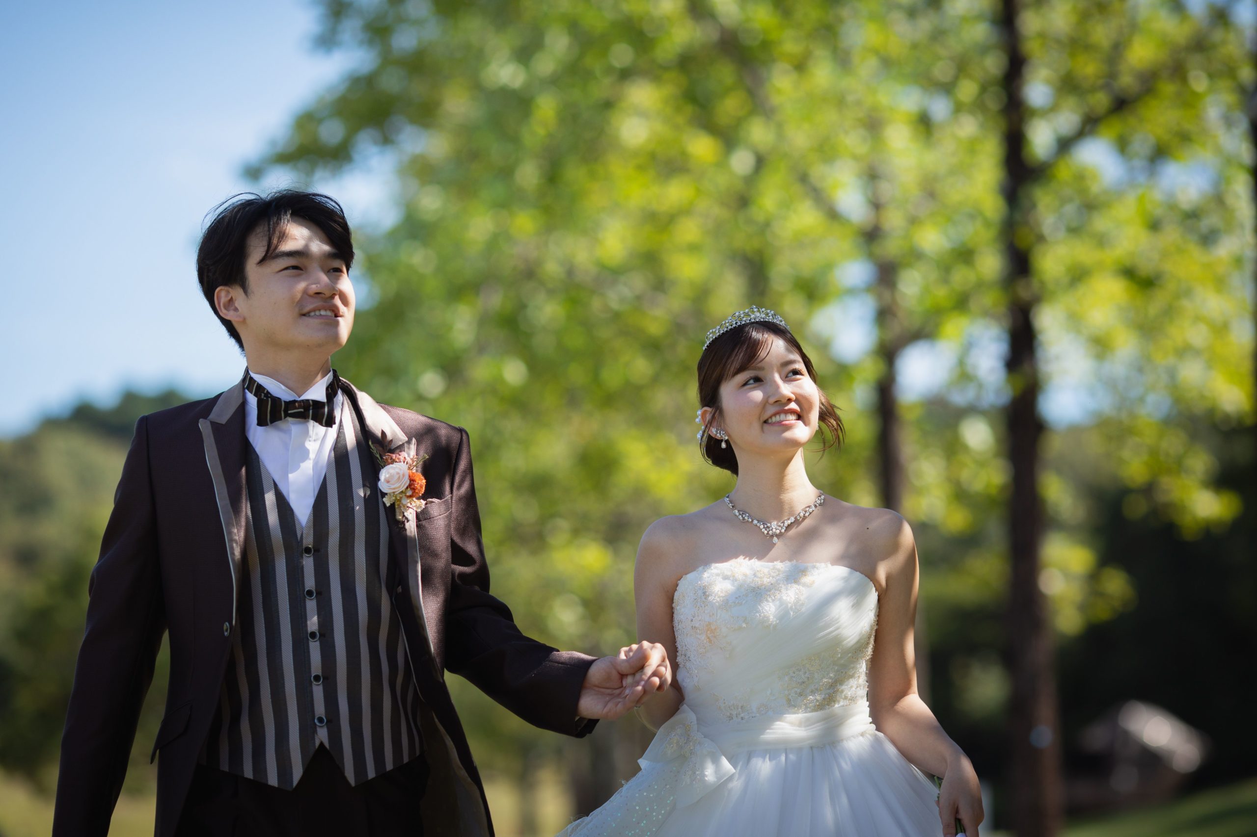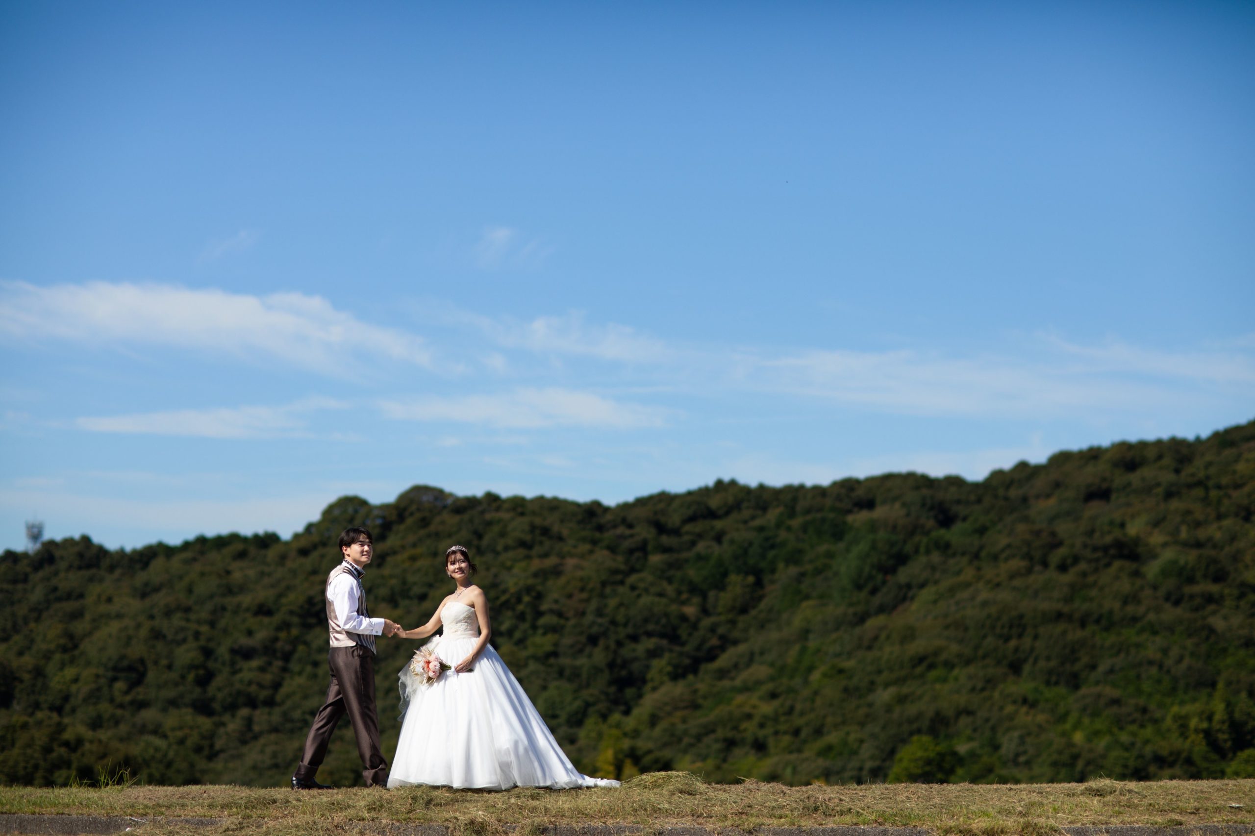 空の青さが、ふたりの幸せをそっと引き立ててくれる背景。